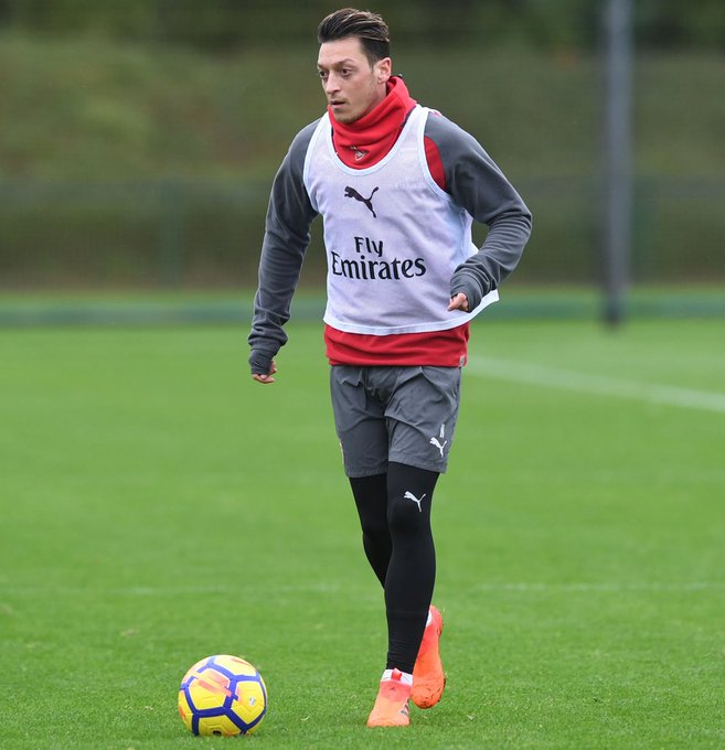 Mesut Ozil was pictured in training ahead of Sunday's clash against Manchester City.