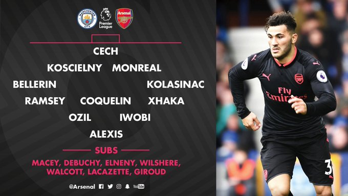 Arsenal starting: Cech, Bellerin, Koscielny, Monreal, Kolasinac, Coquelin, Ramsey, Xhaka, Ozil, Iwobi, Alexis