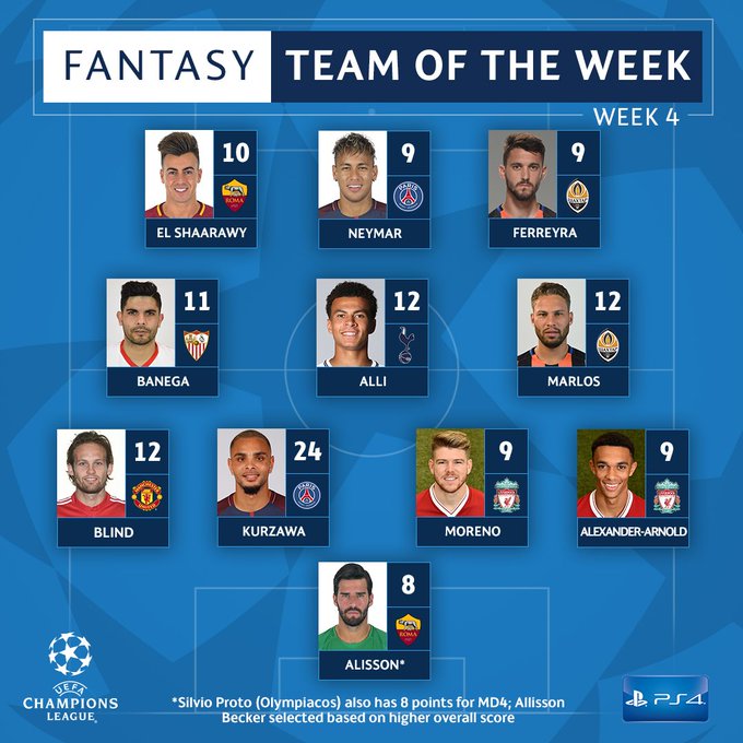 #UCLfantasy Team of the Week! ⚽️👌 How many made your XI? ⚠️ Based on top-scoring fantasy players pic.twitter.com/78gJONxsSW