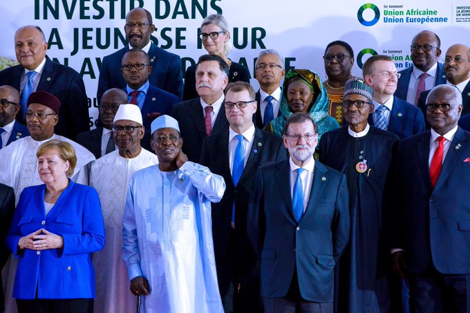 President Muhammadu Buhari @MBuhari posed for the camera with African and European Heads of State at the 5th AU-EU Summit in Abidjan, Cote D'Ivoire.