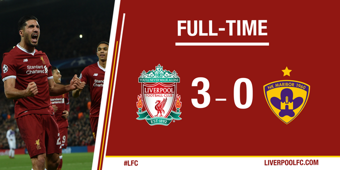 Liverpool thrashed Maribor 3-0 at the Anfield on Wednesday.