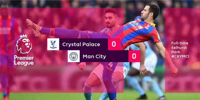 Manchester City drop points for the first time in 132 days at the Selhurst park on Sunday.