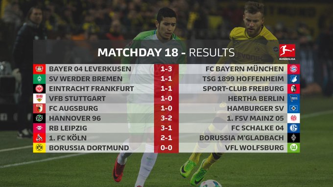 Hamburg and Werder Bremen settled for a 1-1 draw and they occupy 16 and 17 positions.