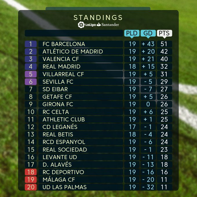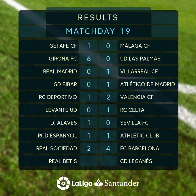 La Liga Match Day 19 Results