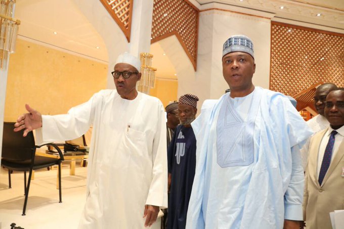 The Senate President Bukola Saraki @bukolasaraki, Deputy Senate President Ike Ekweremadu @Ike_Ekweremadu, Majority Leader Ahmed Lawan, Minority Leader Godswill Akpabio, Chief Whip Sola Adeyeye, Minority Whip Philip Addai were present at the closed door meeting.