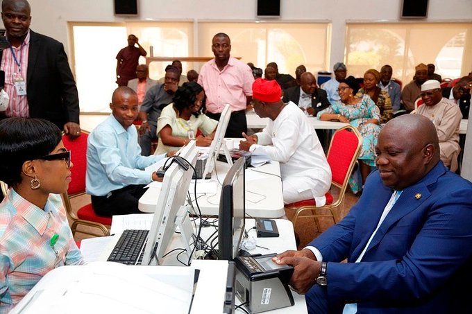 Akinwunmi Ambode was pictured recently carrying out his National Identification Number (NIN) registration.