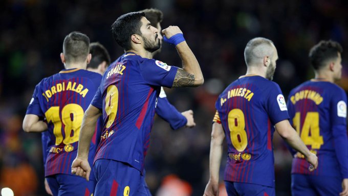 Luis Suarez’s second-half header ended the visitors’ resistance and secured a 1-0 first-leg win at Camp Nou on Thursday.
