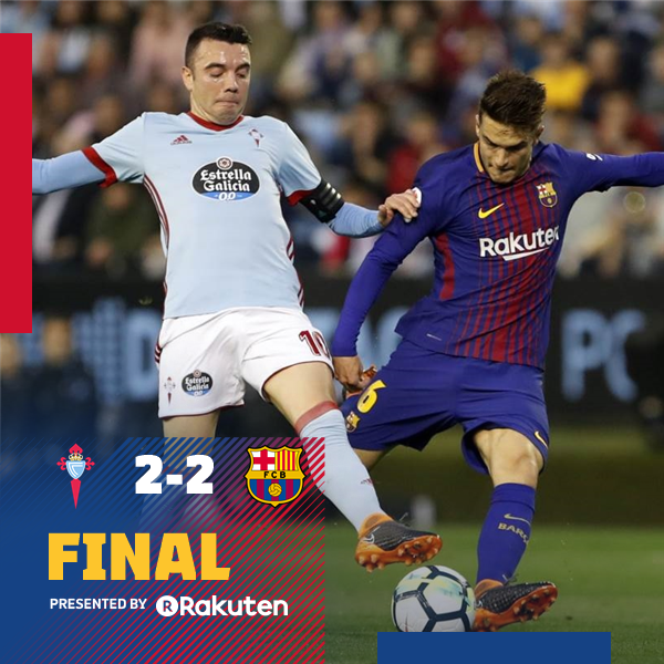 ⏰ Final whistle! Celta 2-2 FC Barcelona ⚽ Jonny and Iago Aspas / O.Dembélé and Alcácer 🔵🔴#CeltaBarçapic.twitter.com/jq0xM5dgwR