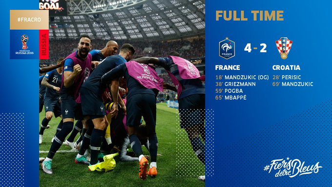 France have lifted their second world cup after defeating Croatia 4-2 at the Luzhniki stadium