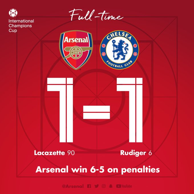 But Alexandre Lacazette struck in the 93rd minute to give both sides a further taste of ICC shoot-out action, Arsenal having lost to Atletico Madrid on penalties while Chelsea had previously beaten Inter.