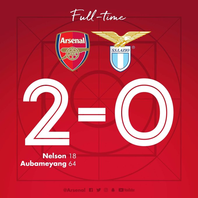 Unai Emery side doubled the lead after Pierre-Emerick Aubameyang netted in the 64th minutes.