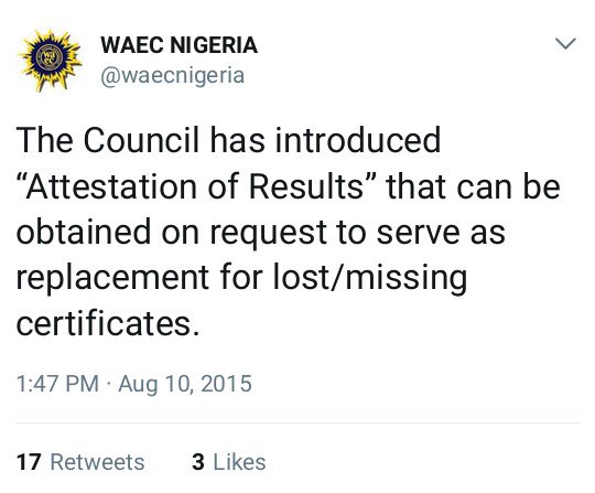 WAEC Introduced Attestation Of Results In 2015 Tweets