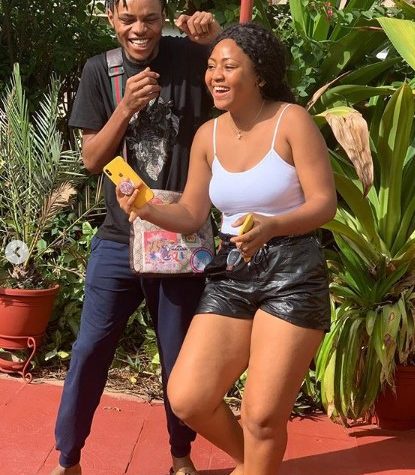 Regina Daniels’brother, Sammy West, was spotted in a viral video spanking their mum’s ass while having a conversation with her.