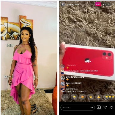 Big Brother Naija ex housemate House, Tacha got fans buzzing on social media after she flaunted her brand new iPhone 11 pro worth N600,000 on live video.