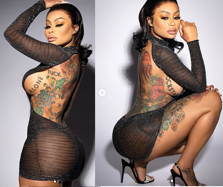 Instagram star and mother of two, Blac Chyna took to Instagram to share these photos of herself posing in a revealing dress that showcased plenty of her side boobs and bare backside.