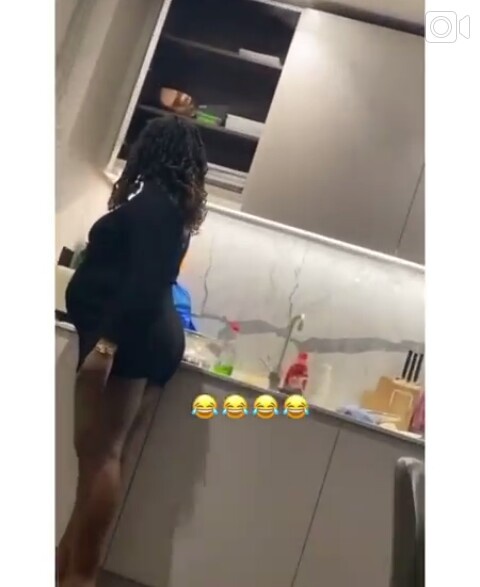 Below is a clearer view of the bump of the soon to be mother, cooking for her to-be hubby, Davido as he lovely hailed her “Wifey”.