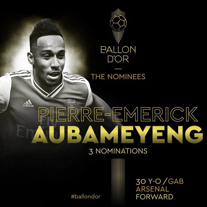 Aubameyang receives his 3rd nomination for Ballon d'Or after missing out in 2018. He finished 11th in 2016 and 21st in 2017.