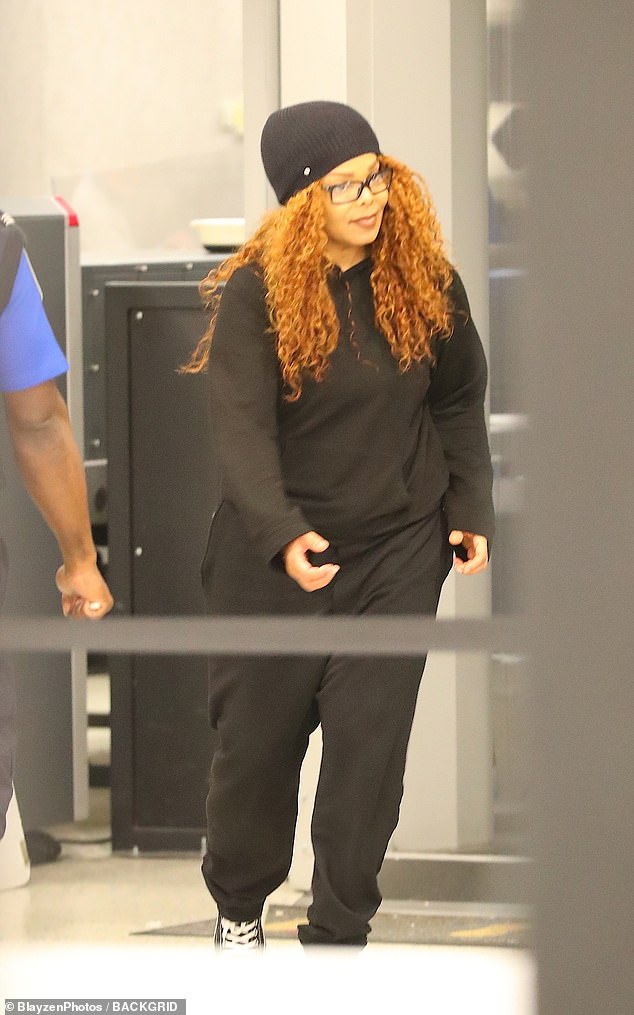 Janet Jackson kept warm in a cozy ensemble as she was snapped at New York City's JFK Airport Tuesday.