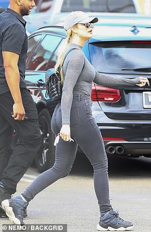The mother of four Kim, 39, looked fantastic in a long python leather coat over baggy beige trousers.