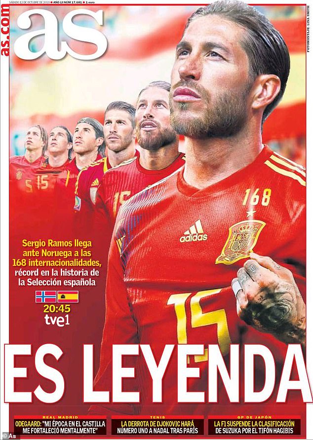 Spanish paper AS regard Sergio Ramos as a 'Leyenda (Legend)' on their front page today