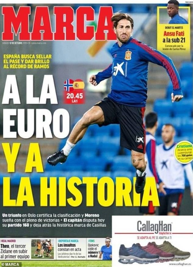 Marca also focuses on Ramos hoping to break Iker Casillas' all-time international record