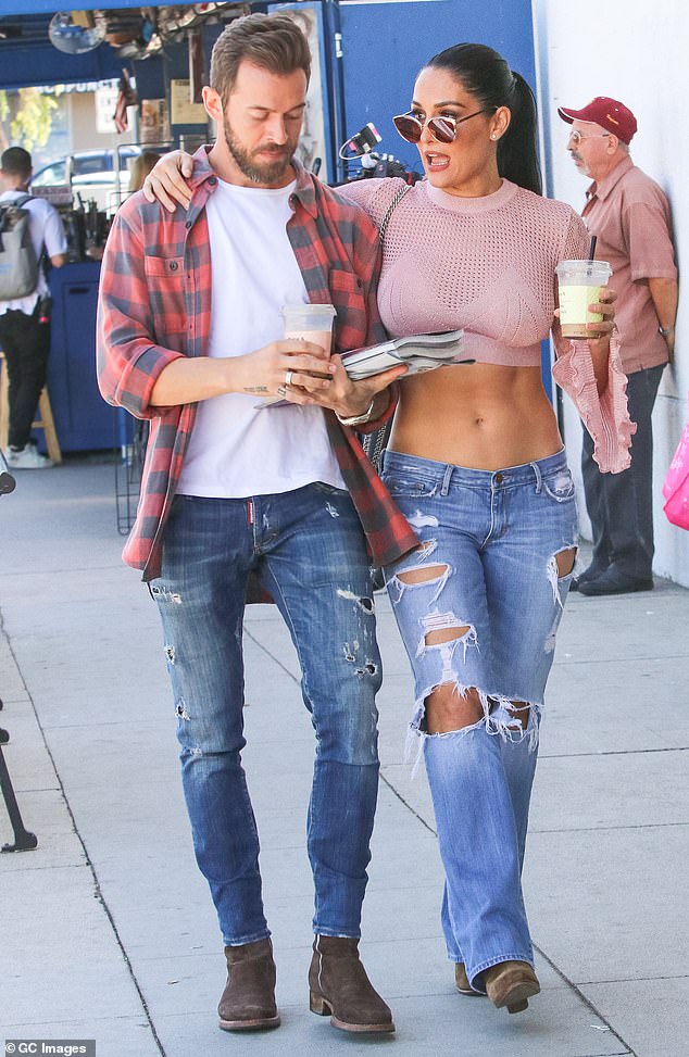 Nikki Bella and sister Brie, both 35, were spotted showing off their taut tummies Tuesday as they shopped for baby clothes in Los Angeles.