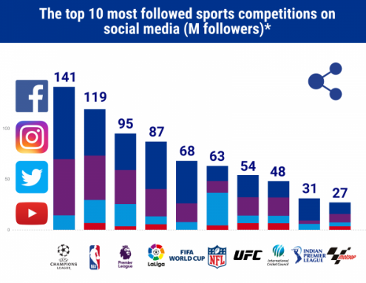 Our chart below shows the top sport competitions with a global reach via social media. The UEFA Europa League just missed the top 10, ranked 11th in our findings.