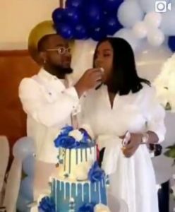 Nigerian singer, Davido is crazy even in love as he feeds Chioma a cake, and also forced it in her mouth in a romantic way at their baby naming ceremony.