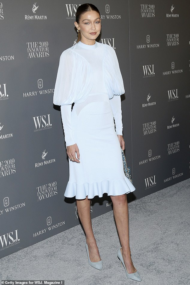 Gigi Hadid lookin chic in a powder blue sheer dress at WSJ Magazine Innovator Awards