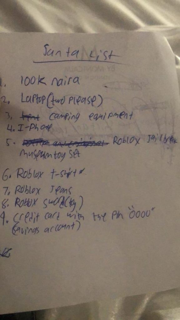 Lawmaker and CEO of NairaBet, Akin Alabi has shared a list his nine-year-old son gave to him which contains his nine demands for Christmas.