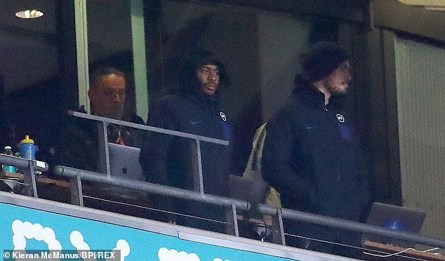 Raheem Sterling watches his England team-mates from the stands on Thursday night