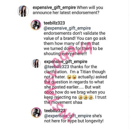The business manager to the Big Brother Naija star said this during an exchange with a fan who asked why Tacha is yet to announce any new endorsement deal.