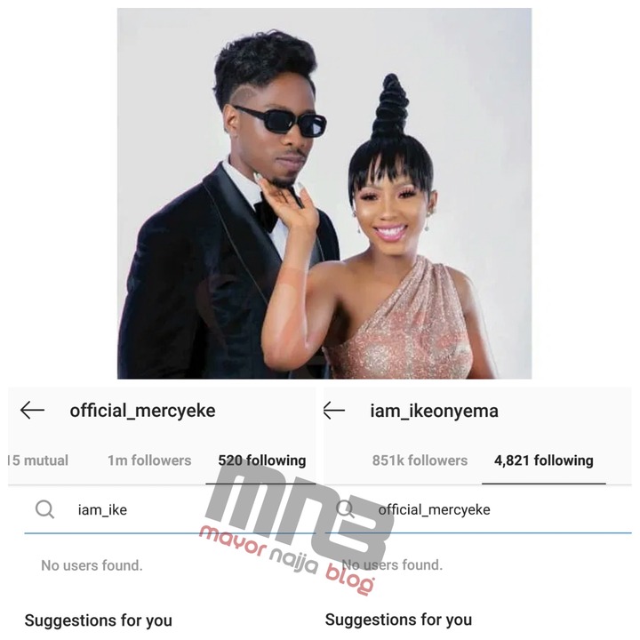 The new one is that the Couple Mercy and Ike has stopped following each other on Instagram, the fresh couple took things to far obviously by unfollowing each other on Instagram