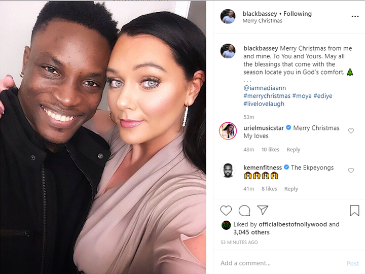 Bassey reportedly relocated to the US about a month ago to join Nadia. He has now confirmed their marriage by posting a selfie with his wife to celebrate Christmas.