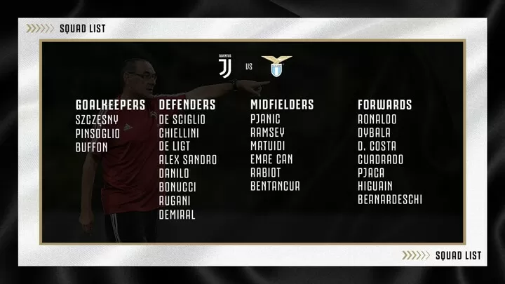 Juventus named their squad for Sunday’s Supercoppa clash with Lazio in Riyadh, bringing Giorgio Chiellini along too.