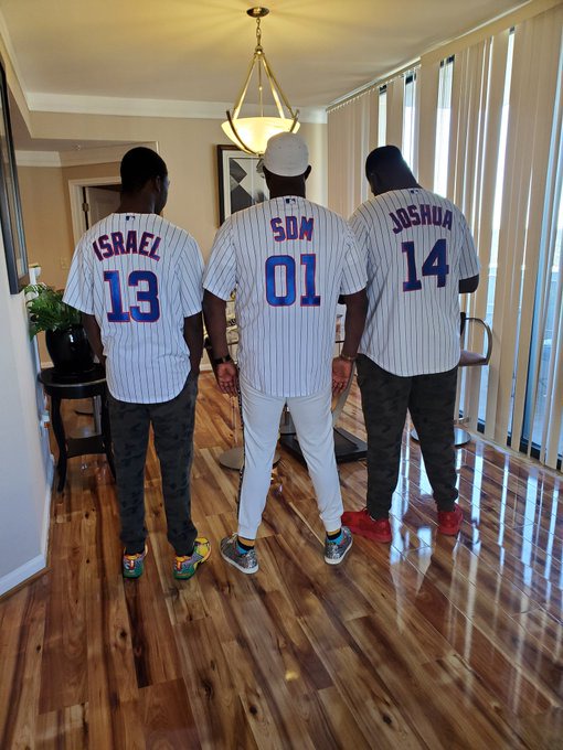 Melaye and his three lovely children wore the same customized V-neck shirts
