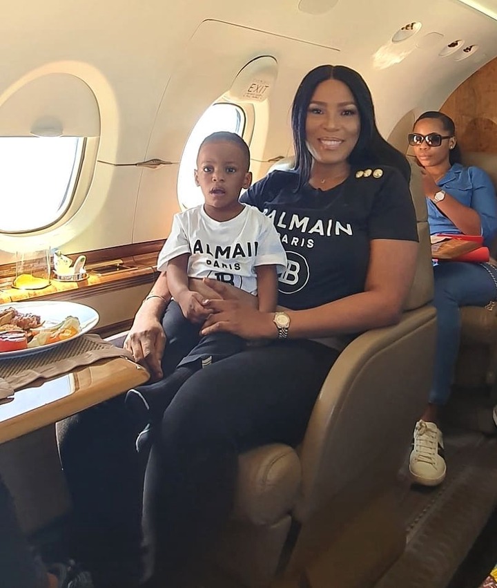 Popular Billionaire blogger, Linda ikeji, and her adorable son, Jayce, are living the life! Linda Ikeji and her son were captured in a private jet flying to Owerri for the wedding of her younger sister, Sandra Ikeji, happening in Owerri, imo state, tomorrow. This is Jayce's first time flying in a private jet, and he's just 1 year old.