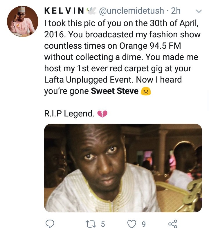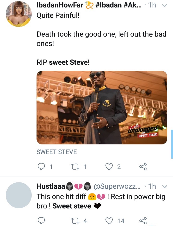 Sweet Steve is currently trending on Twitter as Nigerians mourn and pay tribute to popular Ondo state OAP and comedian, Steve, who died this morning in an accident.