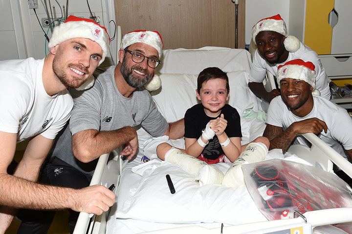 The newly crowned World Club Champions visited the city's Alder Hey children's hospital. Upon their arrival , one lucky boy got a Christmas present from Liverpool's Santa who is none other than the German tactician steering the club to what could become their first invincible season in decades.
