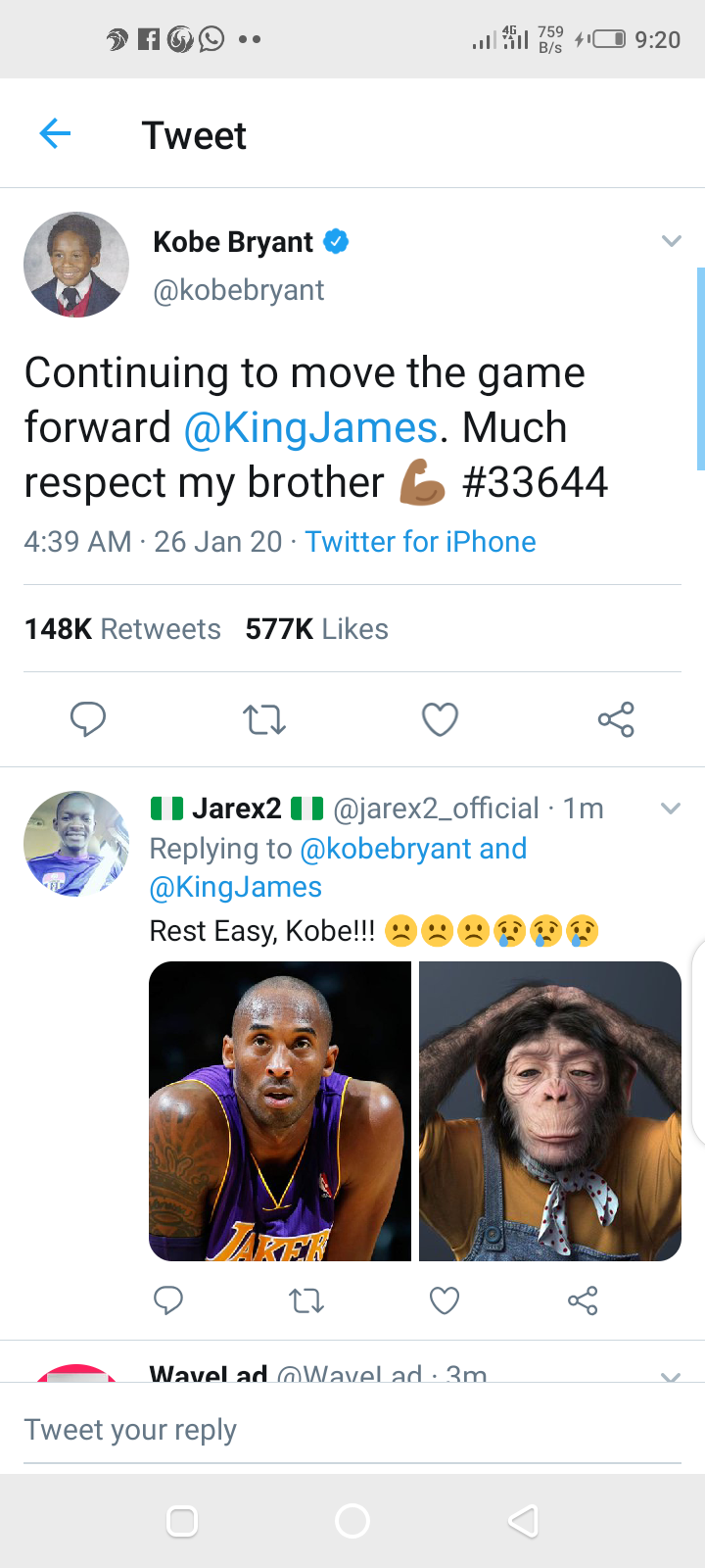 Kobe did not live to congratulate him one in one as his illustrious career and philanthropic life style has been cut short by death.