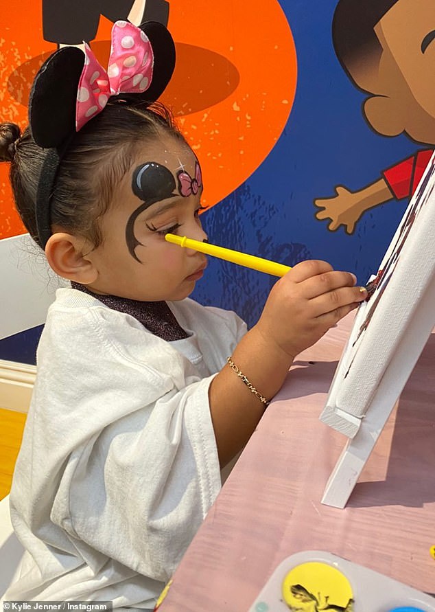 The adorable toddler got her face painted like Minnie Mouse for an all-Disney birthday replete with painting stations and delicate French macarons.