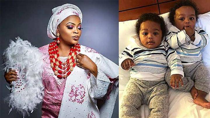 Popular Nigerian Actress, Funke Akindele popularly known as Jenifa has reportedly revealed the faces of her adorable twin sons.