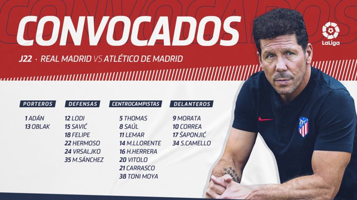 MF: Thomas, Saul, Llorente, Herrera, Vitolo, Lemar, Carrasco, Moya.