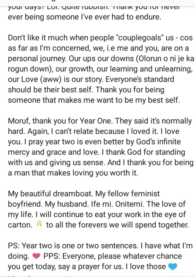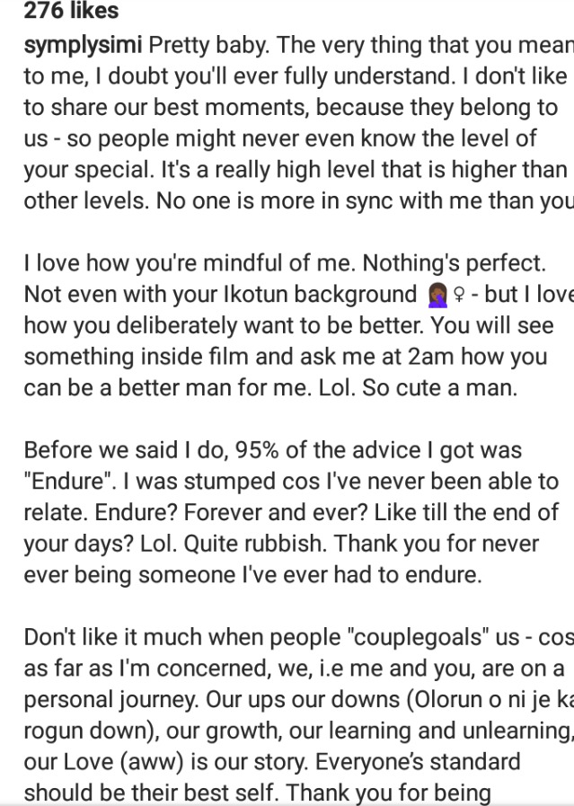 Simisola also used the beautiful moment to write her wonderful husband a sensational letter.