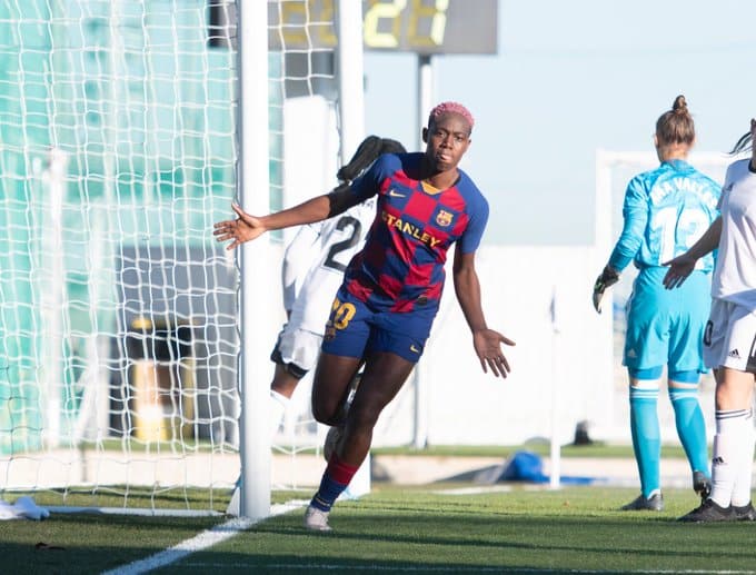 Super Falcons striker Asisat Oshoala celebrated marked her CAF African Women’s player of the year award with a hat-trick in Barcelona Femeni’s win over CD Tacon.