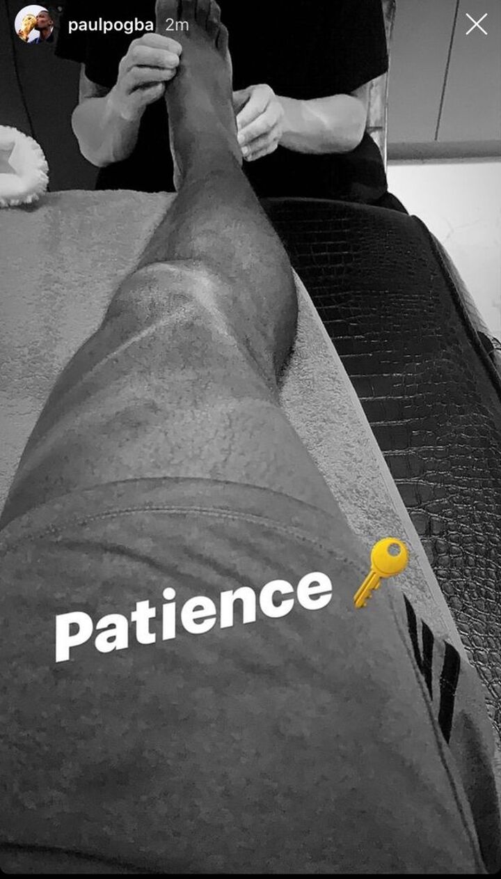 Pogba has been keeping fans up to date with his progress on his Instagram page and on Monday afternoon, ahead of United's League Cup semi final second leg clash against Manchester City on Wednesday, he posted a picture with his cast off with the caption 'patience' along with a key emoji.