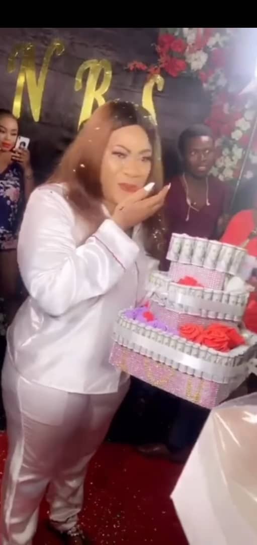 The pretty thespian, Nkechi Blessing Sunday popularly called NBS by fans, friends and followers, added another year yesterday, 14-02-2020 and in the spirit of celebration, a fan has just shocked her with a beautiful surprise gift laced with notes of 100 dollars totaling USD10, 000 (N3.6m) today, Saturday, 15 February, 2020 at the venue of the post-birthday event.