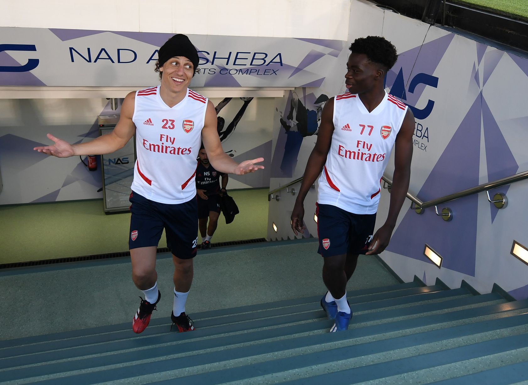 David Luiz and Bukayo Saka during the Arsenal Training Session in Dubai2 of 21