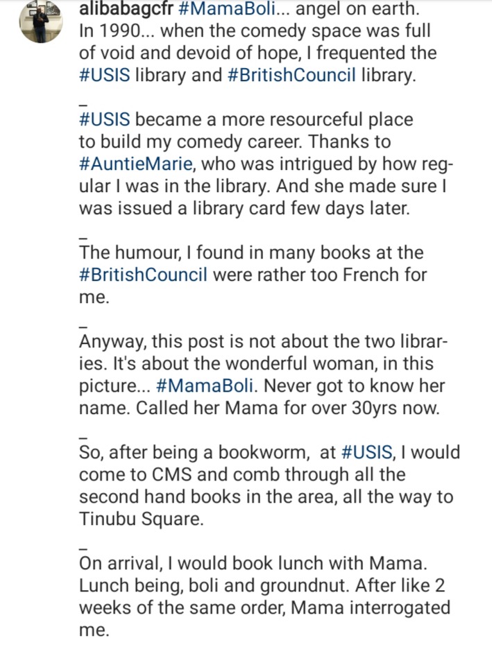 #MamaBoli... angel on earth. In 1990... when the comedy space was full of void and devoid of hope, I frequented the #USIS library and #BritishCouncil library.