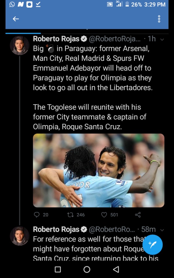 | Ex Arsenal Striker, Emmanuel Adebayor Joins A Club In Paraguay |